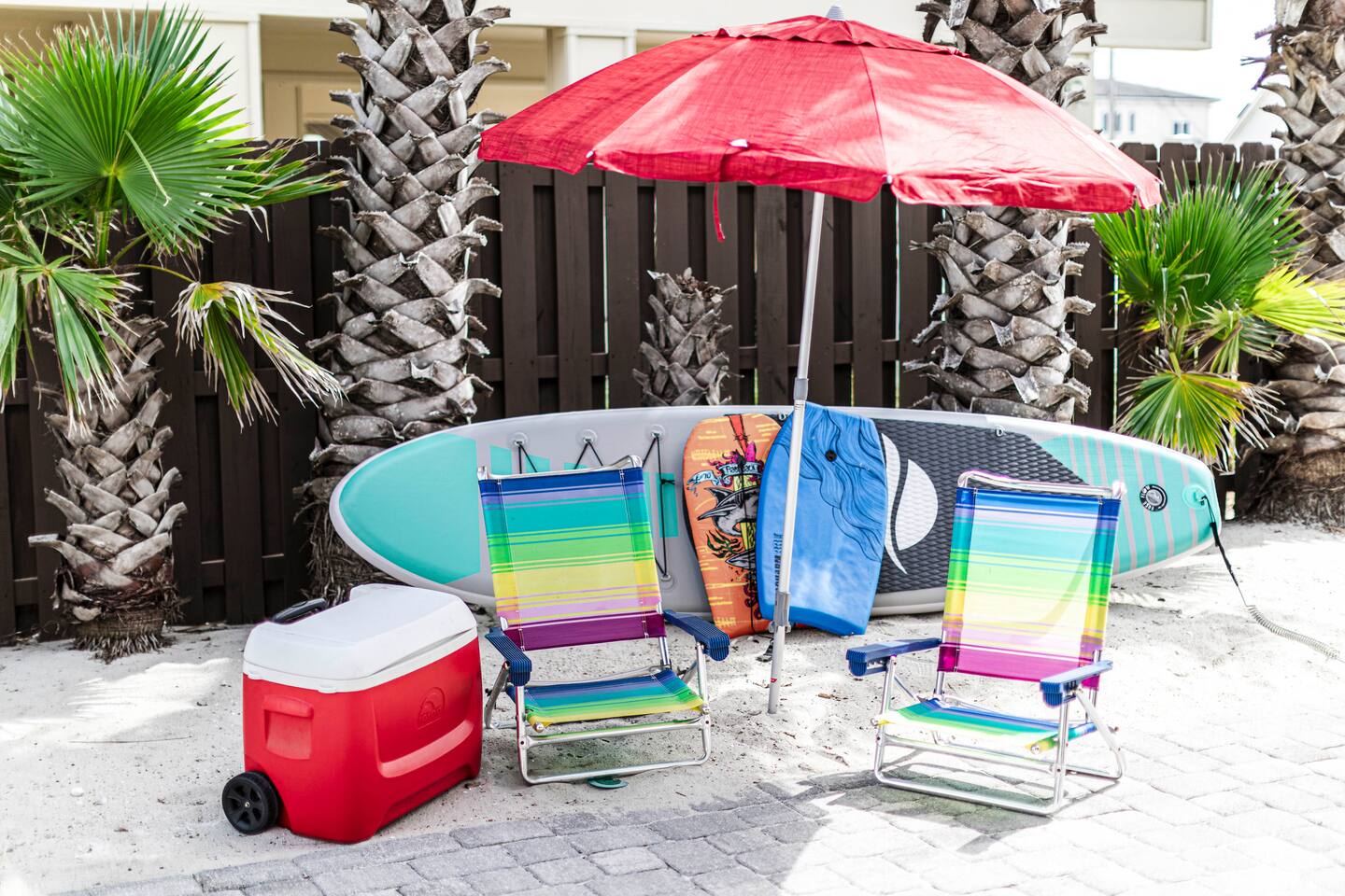 - Beach essentials Beach towels, umbrella, beach blanket, snorkeling gear
